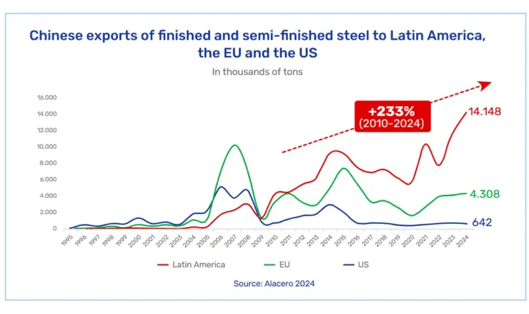 5 December, 2025Steel production in Latin America continues to decline while imports grow 28 November, 2025COP30: Main outcomes and regional participation 28 November, 2025Alacero study reveals the urgent need to strengthen trade defense in Latin America 26 November, 2025Máximo Vedoya is the new President of Alacero for the period 2026-2027 21 November, 2025“Latam en Cifras 2025” presents a detailed analysis of the most relevant figures and challenges facing the steel industry and its value chain 21 November, 2025Announcement of the Winners of the #DesafíoAlacero 2025 Competition 21 November, 2025Latin America Reaffirms Industrial Unity and Strengthens the Need to Defend the Region at Alacero Summit 2025 8 November, 2025Alacero and OECD sign partnership agreement to assess trade flows in Latin America 24 October, 2025Crude steel production in Latin America continues to decline, while imports are on the rise. 14 October, 2025The 2025 Colombian Coal Summit is coming 19 September, 2025The trend continues with declining production and rising imports 12 September, 2025Siderperú presented its 2024 Annual Sustainability Report 11 September, 2025Novacero inaugurated Ecuador’s largest private solar plant for self-consumption 10 September, 2025New edition of SteelOrbis 2025 8 September, 2025ABM Week – September 9-11 15 August, 2025Steel imports in Latin America reach historic record and generate unprecedented trade déficit 15 August, 2025Infographic: Why are we talking about unfair trade? 17 July, 2025ArcelorMittal Acindar has commissioned Argentina’s first hybrid solar-wind farm. 10 July, 2025Aceros AZA inaugurated its 2nd biodigester in Renca Plant, Chile. 10 July, 2025Novacero’s commitment to zero waste 8 July, 2025Alacero Summit 2025 is coming 8 July, 2025Gerdau Inaugurates New Solar Energy Park in Minas Gerais 18 June, 2025Report: ‘Unfair Trade and Its Impact on Latin America: An Analysis by ALACERO and CANACERO Based on an OECD Presentation’ 17 June, 202510th International Congress on Steel Construction – ICCA, in Medellin, Colombia 13 June, 2025Aceros Arequipa recovers zinc oxide from steel mill dust for industrial uses 6 June, 2025OECD warns of overcapacity and deepening crisis in global steel industry 6 June, 2025Monthly figures for the Latin American steel industry 5 June, 2025Alacero’s Position on the U.S. Steel Tariff Increase 29 May, 2025Gerdau Corsa advances sustainable solutions in the construction of Its plants 27 May, 2025Annual Meeting of the Environmental Policy Committee (COPAM), Technology andEnvironmental Control Committee (COTEC), and Health and Safety Committee 13 May, 2025Monthly figures for Latin America’s steel industry 9 May, 2025Regional concern over the impact of unfair trade 7 May, 2025Novacero obtains ISO 50001 Certification 7 May, 2025Monthly Figures of the Latin American Steel Industry 24 April, 2025New wind farm for ArcelorMittal Acindar and PCR in Argentina 8 April, 2025Aceros AZA inaugurates the most modern scrap shredder plant in Chile with an investment of US$26 million 4 April, 2025Latin America’s crude steel production drops 3,6% in 2024 7 November, 2024Alacero Summit 2024: the steel industry analyzed the current situation and future perspectives of a key sector for the region 25 September, 2024Participate in the steelChallenge-19 18 July, 2024Monthly figures: Steel consumption increases in the region, but production continues to fall. 12 June, 2024Steel imports have increased and are affecting the growth prospects of the Latin American industry 3 June, 2024Organizational changes at Alacero 18 September, 2023Public Declaration – CBAM